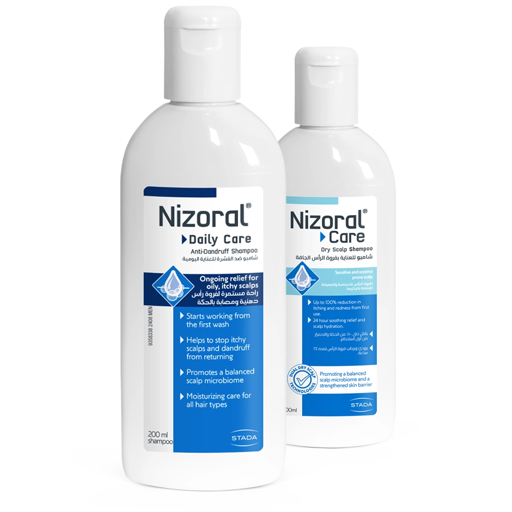 Maintain a healthy, flake-free scalp with Nizoral® Daily Care Oily Scalp & Nizoral® Care Dry Scalp Shampoos, designed for everyday use.